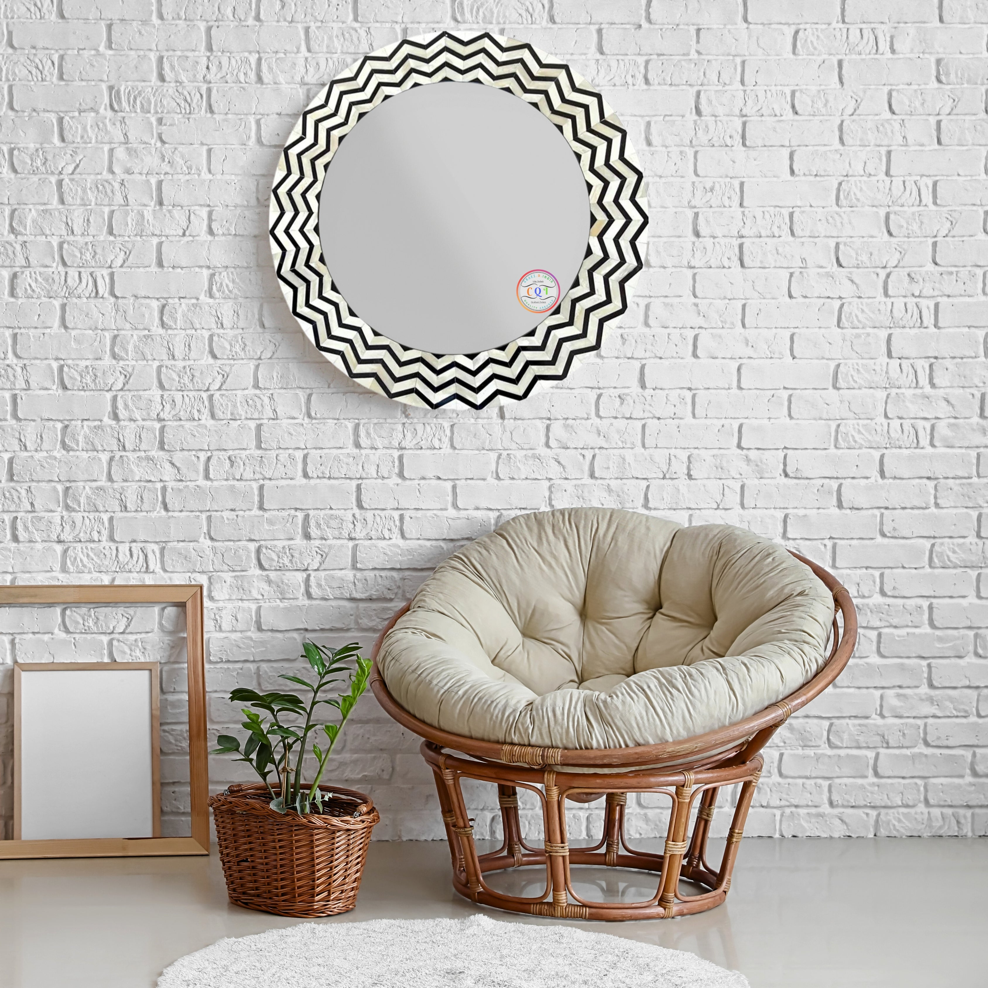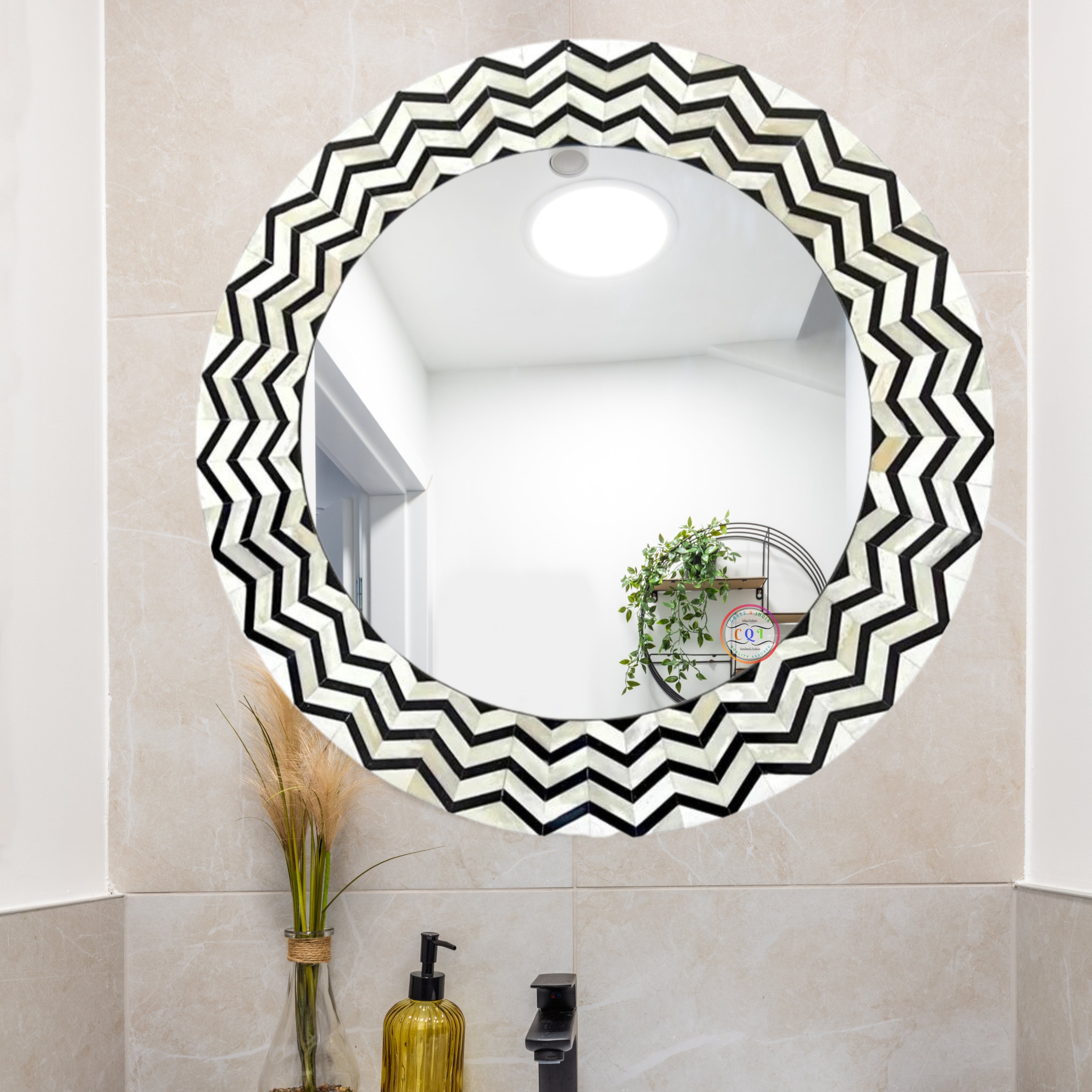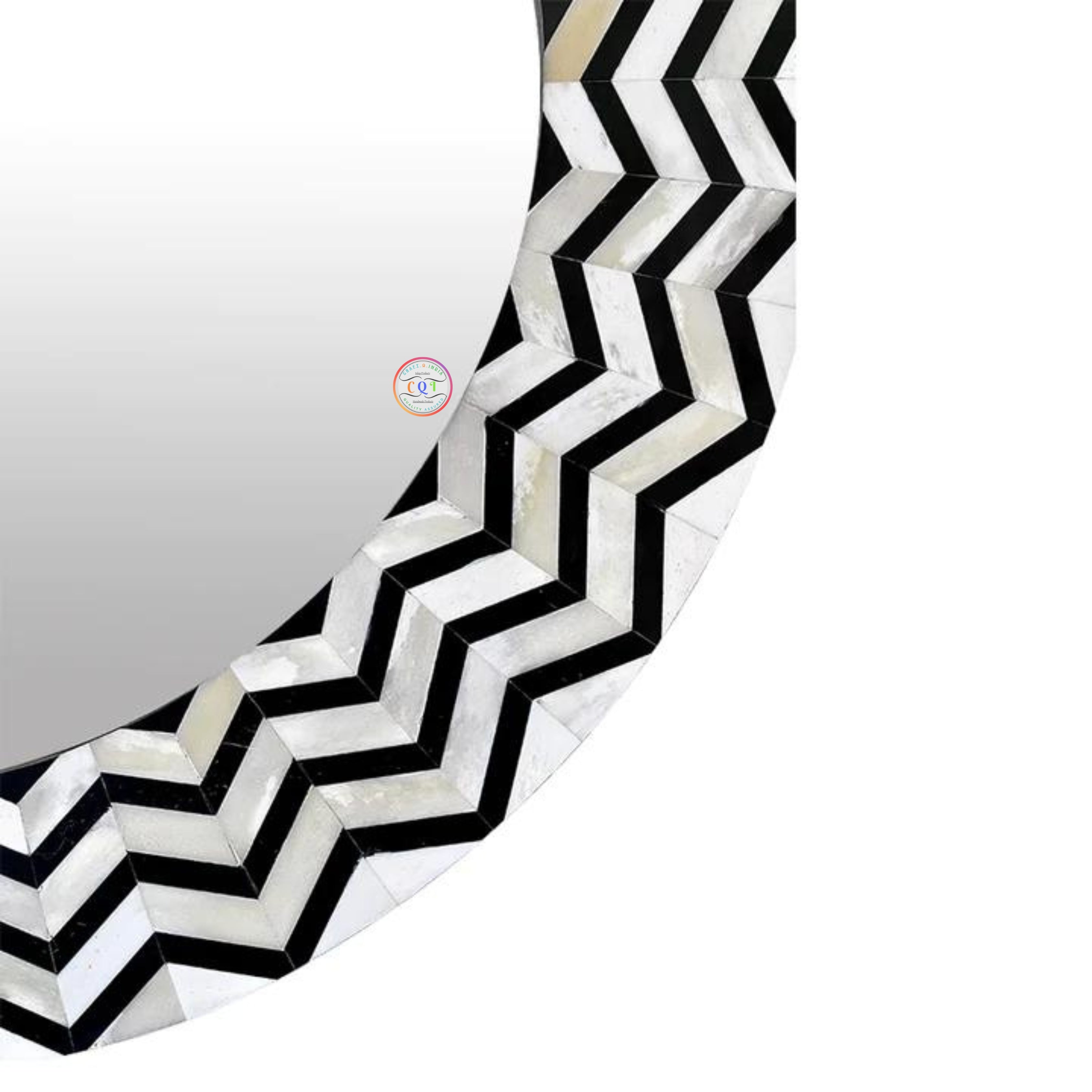 CraftQIndia presents a stunning collection of handcrafted bone inlay mirrors that effortlessly elevate your space. Choose from bohemian, vintage, and modern styles in various shapes and sizes. Adorn your walls with these unique striped, geometric, and Indian-inspired designs, adding an artistic touch to your home decor. Our rustic and antique bone inlay mirrors exude timeless charm, while the elegant blue, black, and white options cater to diverse tastes. Bone Inlay Mirror is a stunning and handcrafted piece that will elevate the style of any space. Made using traditional techniques, this mirror features a delicate strip pattern created with Camel Bone, Mother Of Pearls, and Resins as transparent glue.