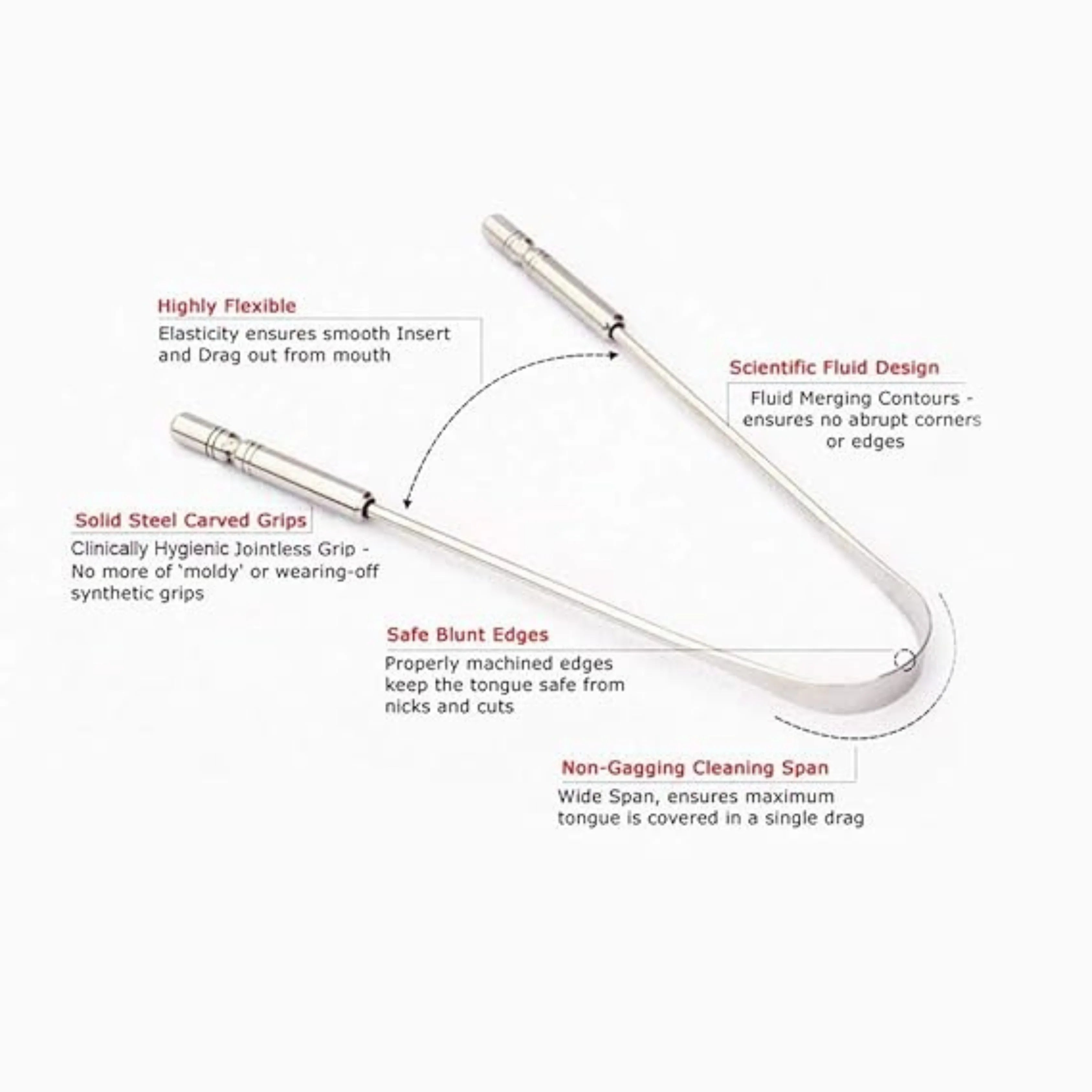 1. Stainless Steel Quality: Our tongue cleaners are made from pure stainless steel, which is not only durable but also highly resistant to rust and corrosion, guaranteeing long-term use.